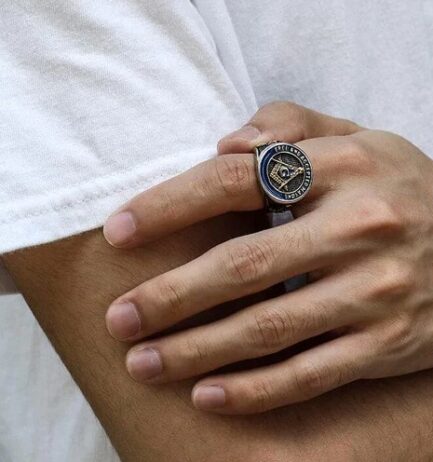 Masonic Ring For Sale. Authentic masonic rings are types of signet rings that show membership to the Masonic brotherhood. In the most basic sense, the meaning of a Freemason ring is to symbolize the member’s ongoing loyalty to the world’s oldest fraternal organization. The pinky finger is mostly acceptable for wearing your ring and it becomes even more acceptable the further up in the tradition you advance. The symbol of the compass should be worn facing towards you only if you are a newer member because it shows you are taking the pledge to the tradition seriously.